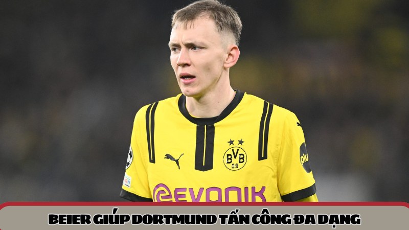 Dortmund luôn cần tiền đạo biết gây áp lực ngay từ tuyến đầu, vì pressing tốt giúp đội đoạt bóng gần khung thành đối thủ và tạo ra cơ hội nhanh. Maximilian Beier đem lại thứ năng lượng đó. Khi không có bóng, anh tích cực áp sát, che hướng chuyền và buộc đối thủ phải xử lý vội. Khi có bóng, anh không chỉ tìm cách dứt điểm, mà còn biết làm tường và nhả lại để tuyến hai băng lên.